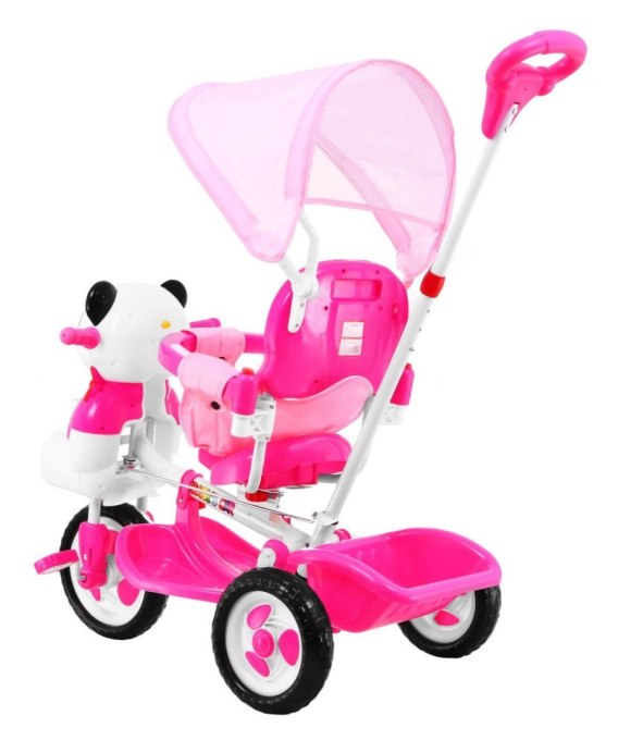 • 3-kołowy Rowerek dla dzieci Panda Różowy + Dźwięki + Daszek + Barierka + Podnóżek + Rączka + Schowek