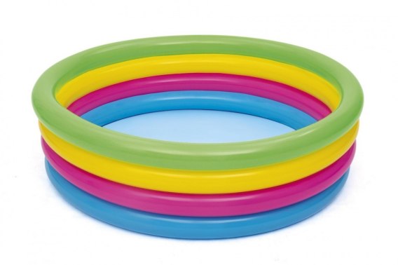• Basen dmuchany 4 pierścienie Brodzik dla dzieci 157x46cm Tęcza BESTWAY + Łatka naprawcza