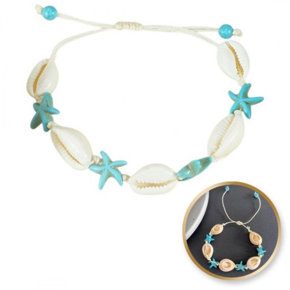 • Bransoletka 2w1 na stopę i rękę na sznurku, MUSZELKI i ROZGWIAZDY B543N