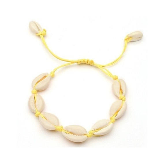 Bransoletka z muszelkami na rękę lub stopęBransoletka z regulacjąCena dotyczy jednej sztuki Wykonana ze stopu metali nieszlachetnychNie zawiera niklu ani chromu