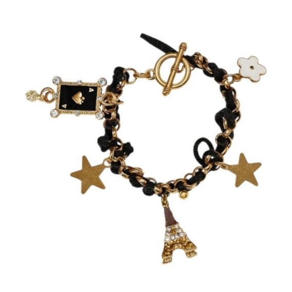 Bransoletka zawijana, rzemyk czarny, złota z zawieszkami B123CZ