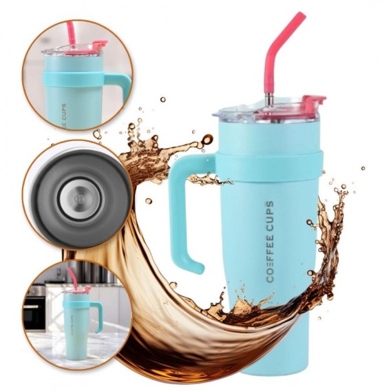 Duży i pojemny KUBEK TERMICZNY z uchwytem i rurką, przenośny 1,2L BD23TUR