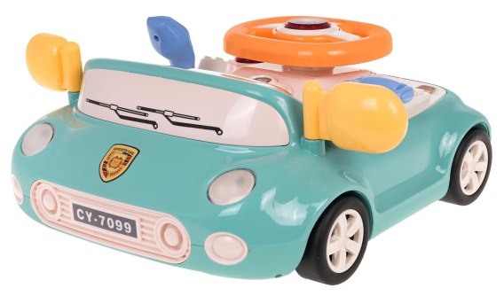 Interaktywna zabawka w kształcie autka z efektami dźwięku i światła dla dzieci powyżej 3-go roku życia. Zabawkowe autko do nauki zasad ruchu drogowego wykonane zostało z najlepszej jakości plastiku w żywych kolorach. Nie posiada ostrych krawędzi, jest w pełni bezpieczne dla malucha. Z przodu autka mamy świecące lampy, a pod spodem pojazdu znajdują się przyssawki. W środku autko posiada ruchomą kierownicę z podświetlanym klaksonem, dźwignię biegów, podświetlane migacze, sygnalizację jazdy (zielony, żółty, różowy), przyciski dźwiękowe z odgłosami wydawanymi przez pojazd, muzyczka, a na ekraniku znajdującym się za szybką przesuwającą się drogę i autko, którym dziecko musi kierować. Po bokach samochodu znajdują się duże lusterka. Zabawka zasilana jest bateriami typu 3 X AA 1,5 V (brak w zestawie) Funkcje zabawki: - przeznaczona dla dzieci od 3-go roku życia, - wykonana z najlepszej jakości plastiku i nie posiada ostrych krawędzi, - efekty świetlne: przednie reflektory, kierunkowskazy, klakson, sygnalizator jazdy, - efekty dźwiękowe: klakson, migacze, przycisk start, odgłosy pojazdu, melodie, - 4 przyssawki na spodzie pojazdu, - żywa kolorystyka, - uczy zasad ruchu drogowego, - rozwija koordynację ręka-oko, - ruchoma kierownica, - ruchomy pojazd na ekraniku, - ruchoma droga na ekraniku. |