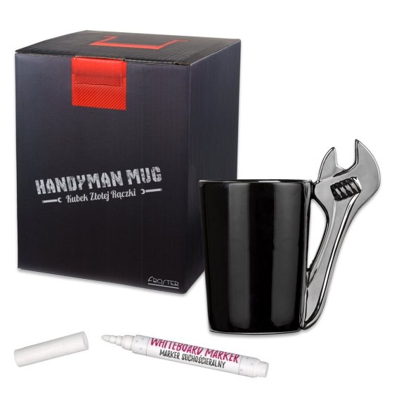 Kubek Złotej Rączki sprawi, że zrobi się cieplej na sercu każdemu – od dziadka pomocnego w naprawie samochodu, przez tatę, który skręcił nam biurko, aż po brata, który naprawił naszego laptopa. Mąż, który potrafi naprawić kapiący kran czy kolega pomocny w montowaniu półek, także chętnie napiją się z niego gorącej herbaty. Podaruj go na Dzień Ojca, Dzień Chłopaka, urodziny i na każdą inną okazję, podczas której chcesz podziękować naszej Złotej Rączce.