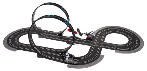 - tor ok. 98 cm x 156 cm x 37 cm, - łączna długość toru ok. 508 cm, - autka ok. 11 cm x 3 cm x 5,5 cm, - opakowanie ok. 68 cm x 53 cm x 6 cm. |